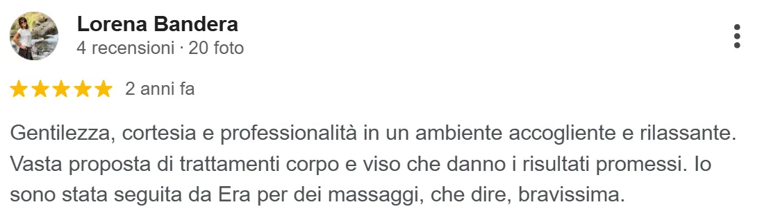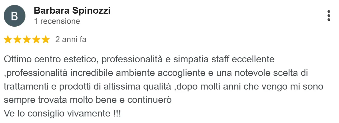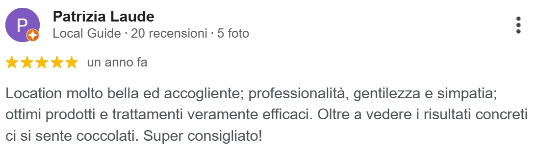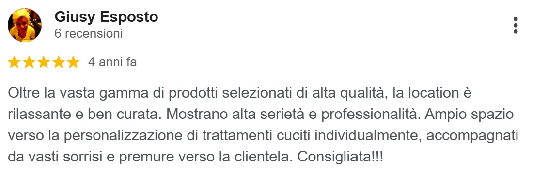 “... ottimi prodotti e trattamenti veramente efficaci. Oltre a vedere i risultati concreti ci si sente coccolati”